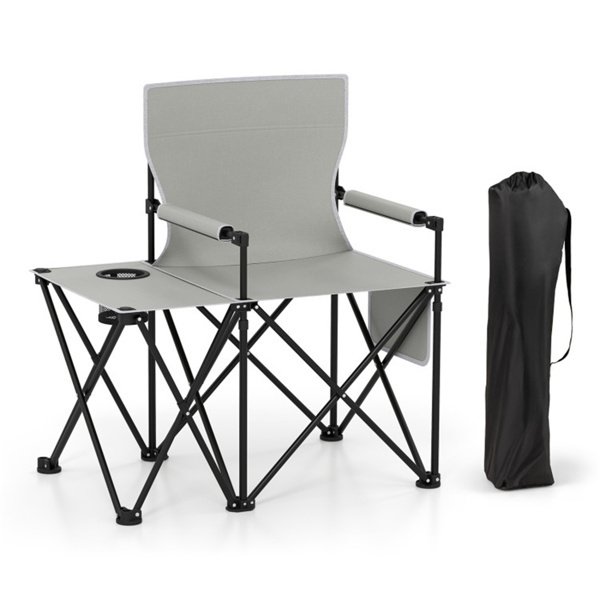 Home > Oversized Foldable Camping Chair with Side Table & Cup Holder, 330 LBS Capacity for Outdoor Use-Gray