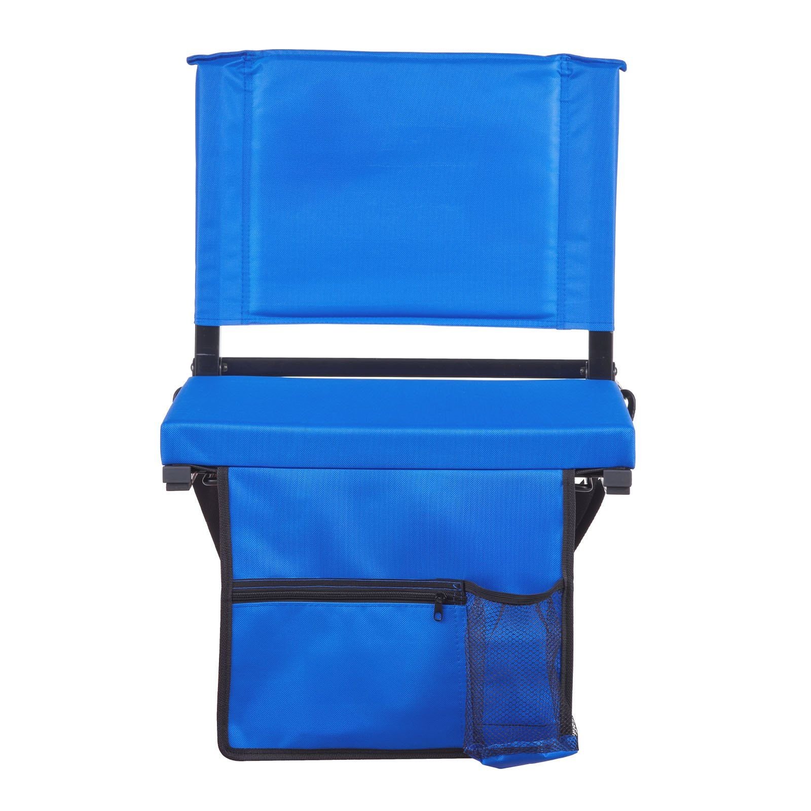 Enhance your outdoor experience with this bleacher seat with back, designed with several storage pockets for your phone, drinks, snacks, and tissues. Built with a lightweight steel frame, high-density foam, and 600D waterproof Oxford cloth, it delivers durability and convenient comfort.
